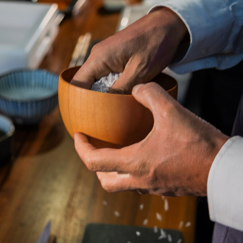Une expérience gourmande autours des sens, où le savoir-faire est conté à travers les formes géométriques, la symbolique des nombres et des couleurs qui se retrouvent dans l’assiette et partout dans la nature.